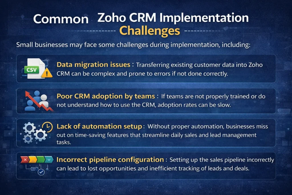 Implementing Zoho CRM can significantly improve how small businesses manage customer relationships, sales pipelines, and daily operations. With the right strategy, businesses can organize customer data, automate workflows, track sales performance, and improve lead conversion rates effectively.